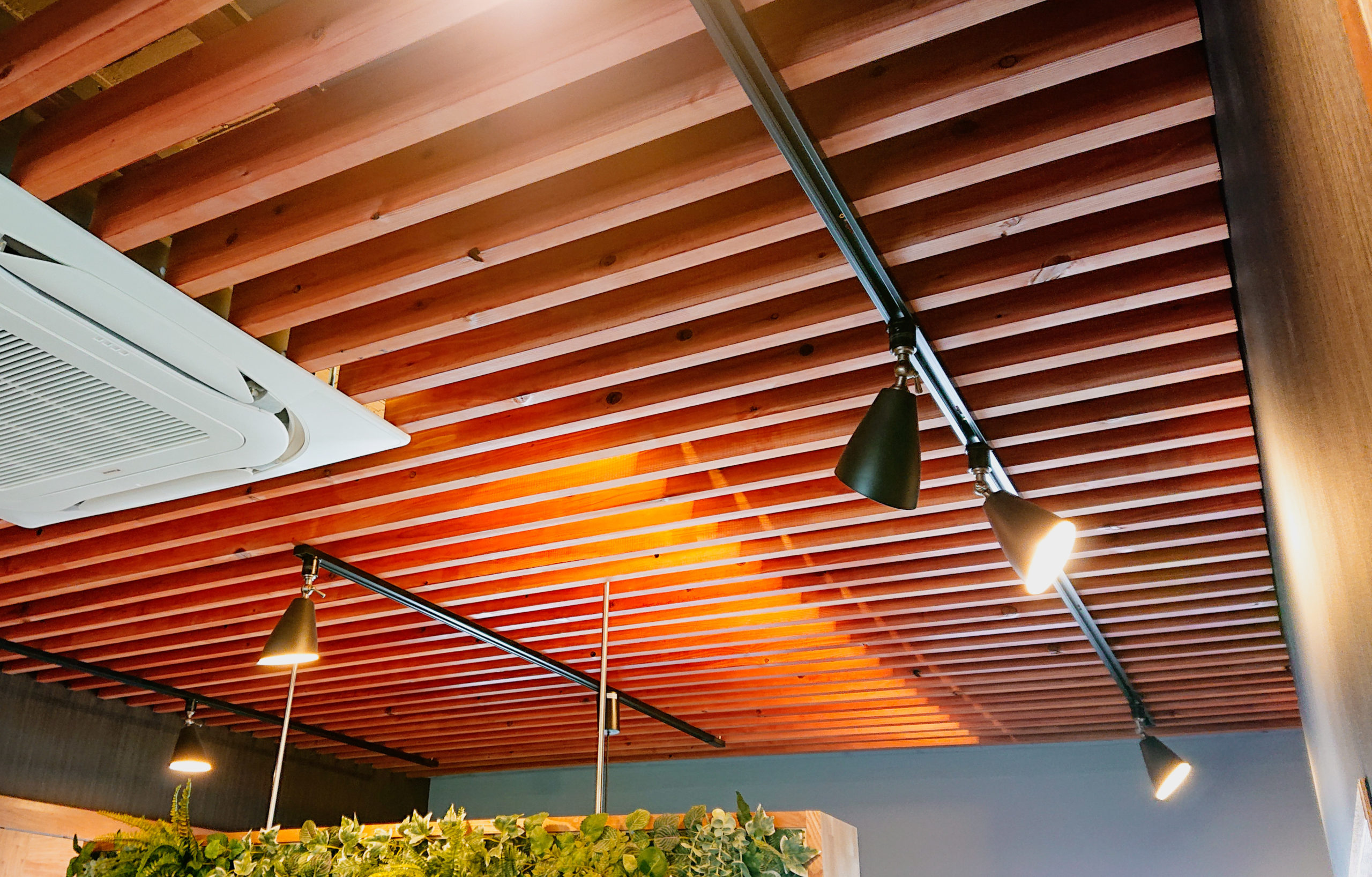 天井ルーバー装飾と間接照明