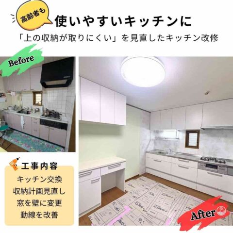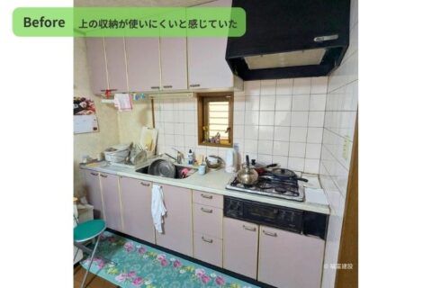 高齢者も無理なく使えるキッチン改修事例|使う物は手の届くところへ
